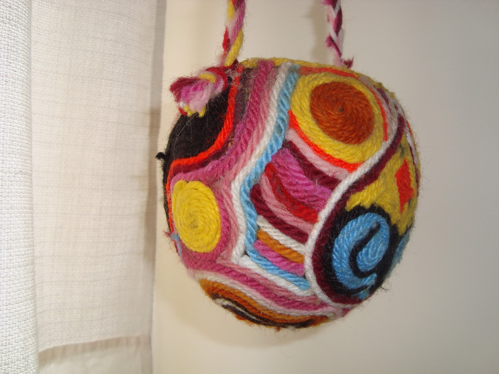Na figura que segue, o revestimento numa casca de côco com lã. Esse trabalho de origem a panôs com a aplicação de lã também.
