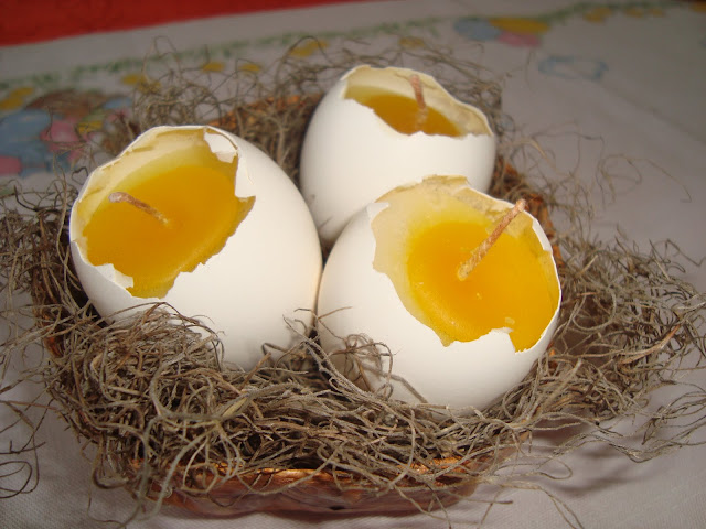 A cestinha de papel, feita pela Kerstin, quando pequena, com ovos-vela feitas pela minha mãe.