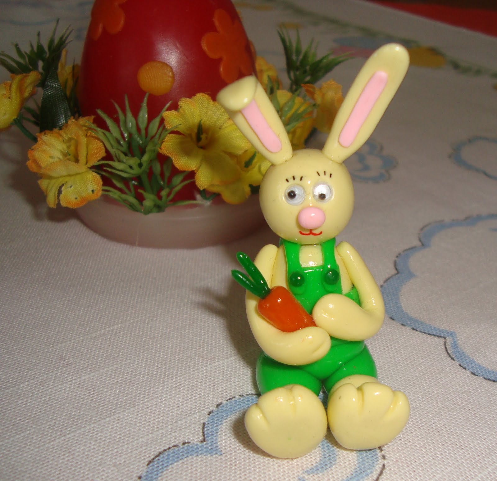 O coelhinho de biscuit, feito pela minha irmã Caroline.