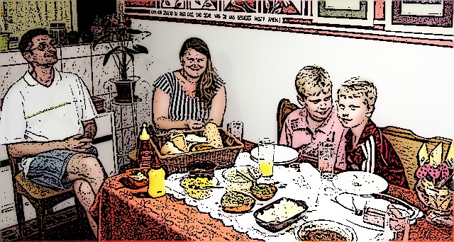 Os meninos deles, uns fofos…! Prá agradar todo mundo, um bifê(zinho) de cachorro quente!