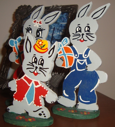 Ainda em cima da mesinha, umas peças que fiz há uns 15 anos atrás… quando comecei a pintar madeira.