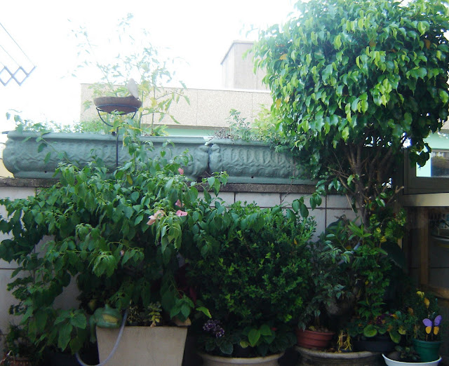 Aí, frustrada com as flores que não vinham, resolvi trocá-lo de lugar, pro lado de cá do terraço, para não pegar mais sol diretamente.