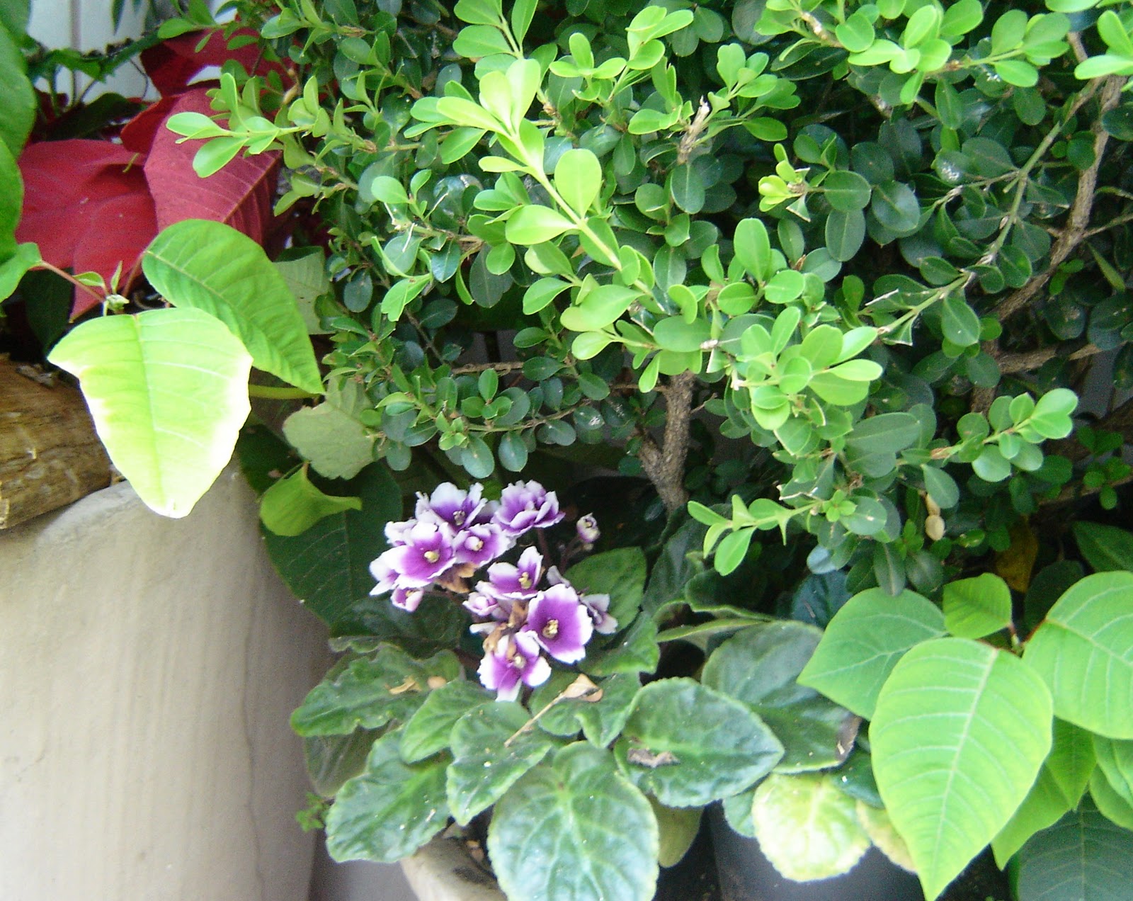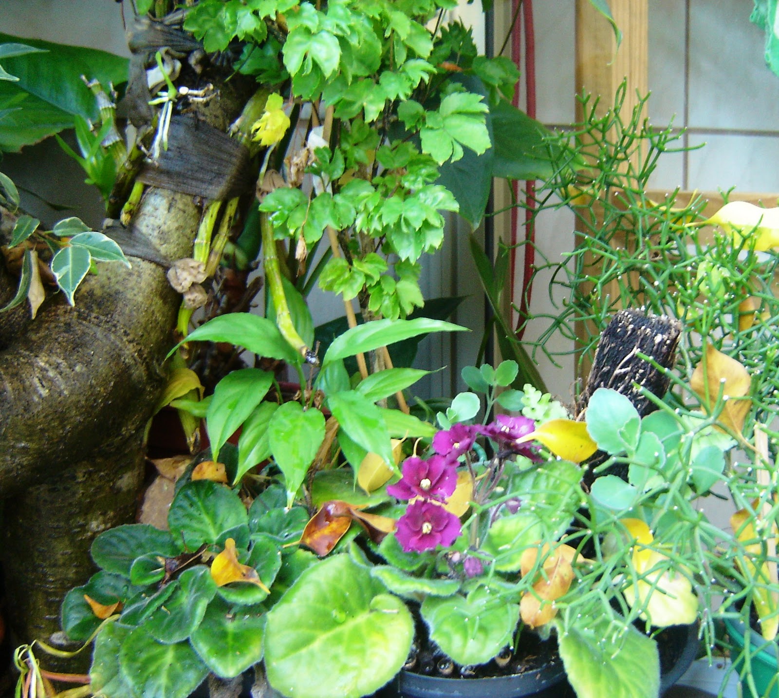 Até as violetas, as poinsettias e as orquídeas no caule do ficus sobreviveram!