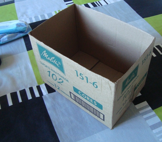 1) Recorte as abas da caixa – e guarde, pois vai precisar depois (vale qualquer caixa, não estou fazendo propaganda pro café, rsrsrs)
