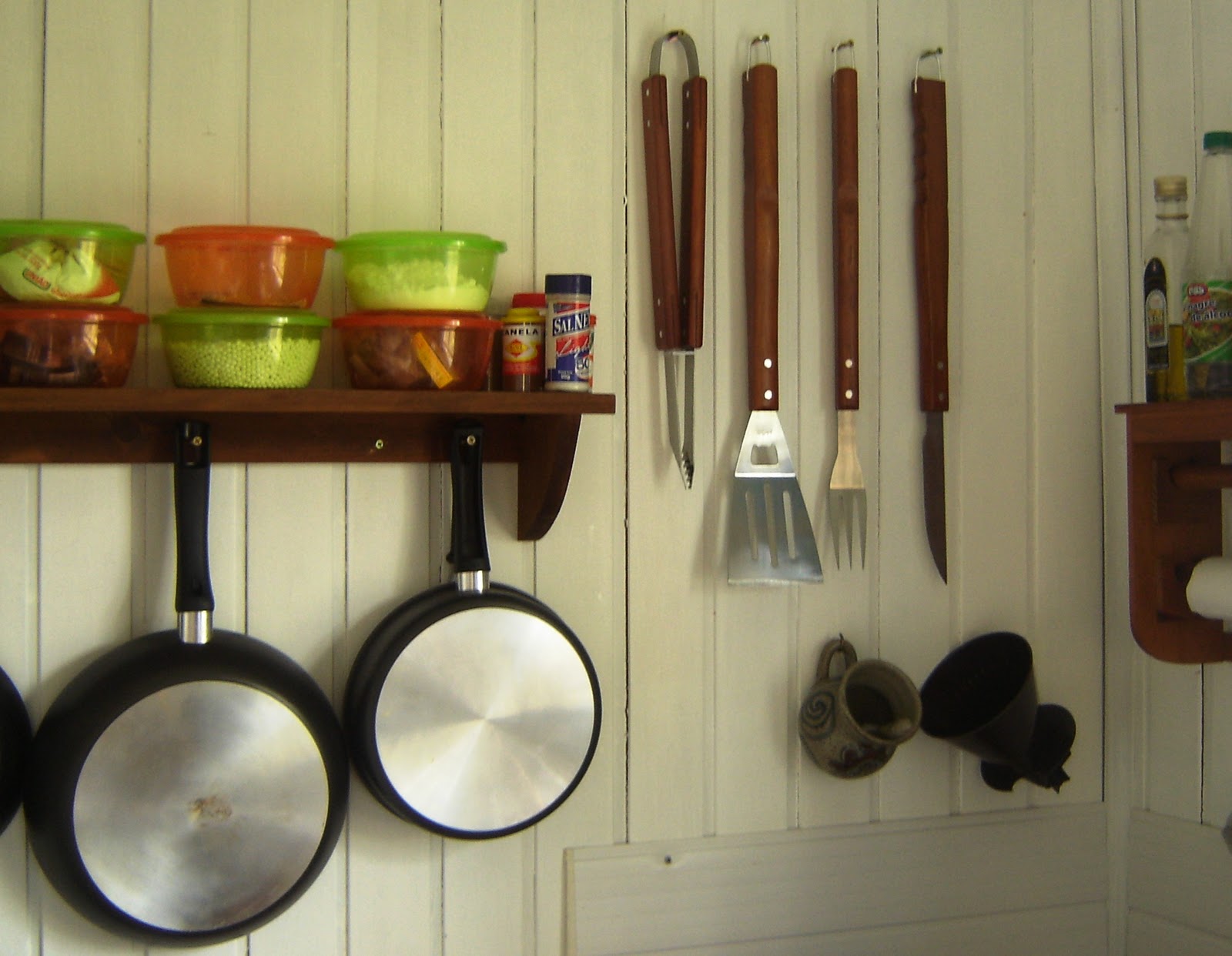 Ainda na cozinha, também as estantezinhas feitas por meu pai há uns anos atrás serviram agora para organizar utensílios.