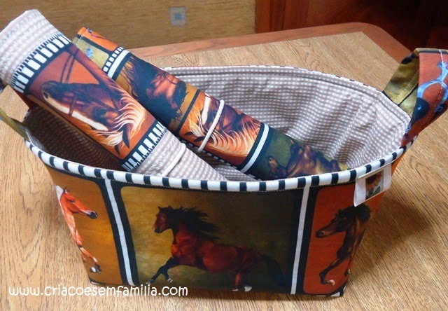 Achei este tecido e resolvi fazer um cesto para os pães e o jogo americano.