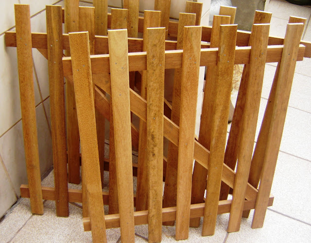 Continuando: meu pai sabendo que eu precisava dos portões, pediu que eu tirasse as medidas…resultado: a cama ganhou novo estrado e o estrado virou portões! E o mais legal foi acompanhá-lo na madereira e depois até um marceneiro que cortou as peças (do novo e do antigo estrado!) no tamanho certo. Aquele cheirinho de madeira cortada, aquela “bagunça” de marcenaria… e depois ajudei a montar as peças.