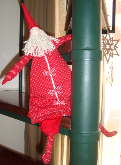 Terminei o Noel Tilda, que fiz acompanhando a proposta da Helô do blog Tilda Brasil, baseada em modelo da designer Tone Finnanger. Eu gostei de fazer e gostei do resultado!  Ele ficou procurando o lugar dele aqui em casa… primeiro, sentou ao lado de uma outra galera natalina…