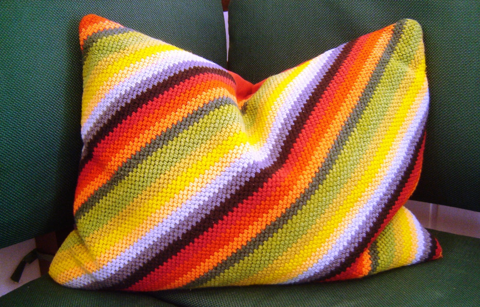 A outra relíquia é uma das almofadas bordadas pelo Opa (avô paterno). Eu era criança e via quadros e almofadas sendo bordados por ele, nas horas de folga e nas férias. Eram bordados com os quais ele presenteava filha, noras…