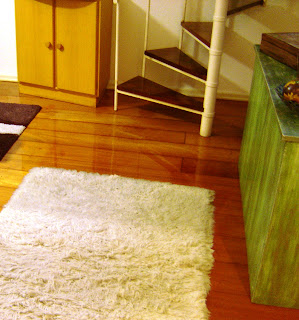 | Não sei se dá pra ver, mas o chão estava todo molhado – aí um dos tapetes encharcados! E do ladinho, um dos grandes… |