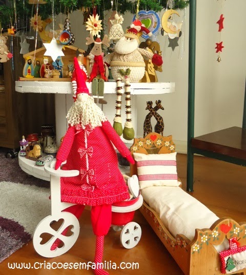 Hoje guardei a decoração de Natal. Ao organizar me dei conta que, no post [abaixo] em que mostrei um pouco das coisinhas aqui, não mostrei algumas peças novas que ganhei pra decoração.