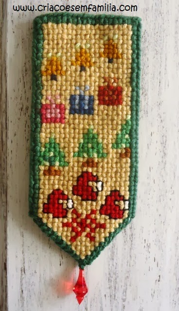 Da Ione, nossa vizinha querida, ganhei este lindo enfeite bordado. Esqueci de tirar foto no lugar original, junto ao calendário de Advento, que já guardei.