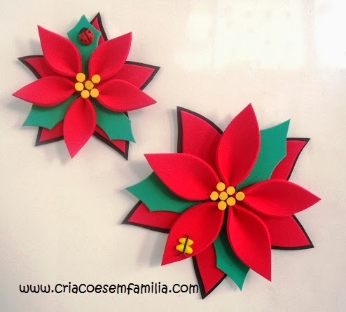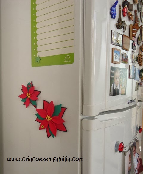 Minha irmã Liliana usou novamente de sua criatividade e fez imãs de geladeira, de E.V.A., garantindo a flor de Natal na cozinha!