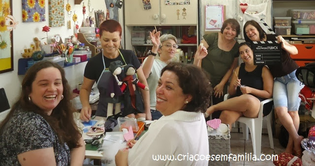 Teve encontrinho de bonequeiras [ainda em novembro], com a presença honrosa da Sandra Bugmann [acompanhada do Maurílio], do Bugstudium, de Blumenau. Vejam a cena…