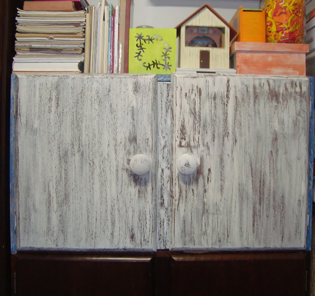 Mas concluindo o post, e desejando que o PAP ajude, mostro como ficou a parte de cima do armário craft. Falta a parte de baixo, inventar algo nos puxadores (com azul)…arrumar por dentro…