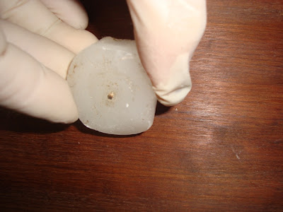 2 – riscar a peça com um pedaço de parafina ou um toco de vela (sem cor) – se quiser que apareça bastante a madeira original, passe a parafina em quase toda a peça