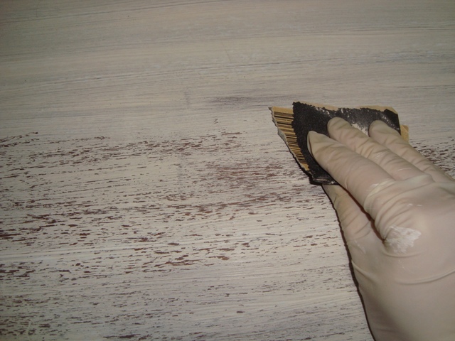 meu espaço de criações num post, pensava em “clarear” os móveis. Pois bem, ontem à noite comecei. Resolvi fazer uma pátina, do jeito mais fácil que conheço – em 4 passos a peça está pronta!