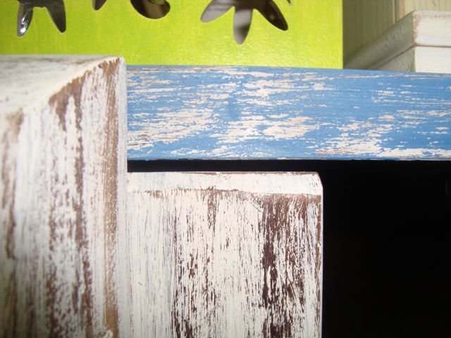 Caso queira fazer de outra cor: 1- lixe e pinte primeiro com o branco; 2 – passe a parafina; 3 – a cor escolhida; 4 – e novamente lixar. É o caso da parte azul que fiz: