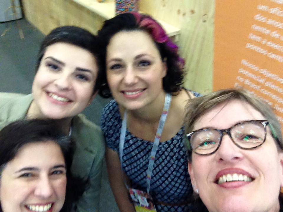 Como meu tempo era de um dia somente, dei preferência aos encontros com pessoas queridas – e juntas caminhamos pelos estandes. Foi uma delícia. Pelas fotos, dá pra ver a alegria dos encontros 🙂 Eu só conhecia a Fabiana – as demais, foi o primeiro encontro “ao vivo”!