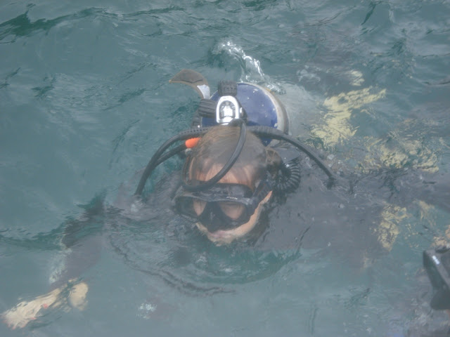 Na foto abaixo, a Kerstin saindo do mergulho – e a Sandra contou o resto da história…inclusive explica a cor pálida das fotos… Aliás, não conhece o blog dela? Vai lá correndo conferir!