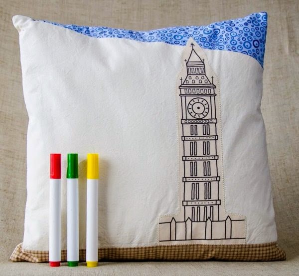 A capa de almofada pintar e criar – Paris é a primeira peça da coleção “Pintar e criar: pequenos artistas pelo mundo!”.