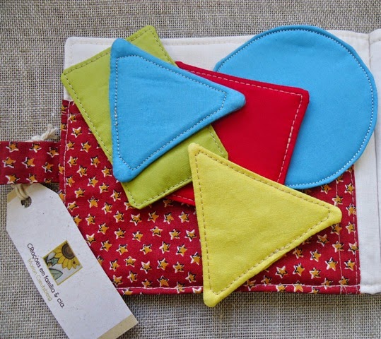 A capa é confeccionada em tecido 100% algodão, alternando tecido cru com estampas diversas. O desenho é criação original da equipe do atelier CRiações em família & cia. e é impresso sobre o tecido. A capa, mesmo depois de pintada pela criança, é lavável – nem a impressão, nem a pintura sairão.