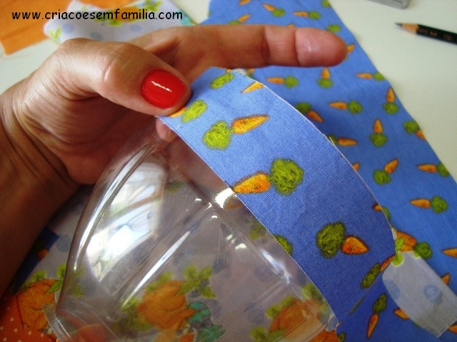 4 – Cole a tira de tecido, por fora.