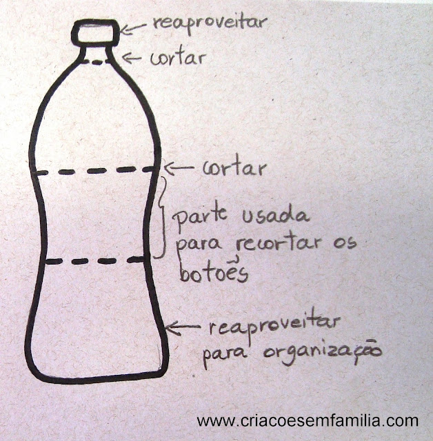 esquema de corte da garrafa. Tudo pode ser aproveitado, mas veja que a parte superior, oval, é a que vai dar o formato de ovo. Portanto, corte desse mesmo jeito as duas garrafas.