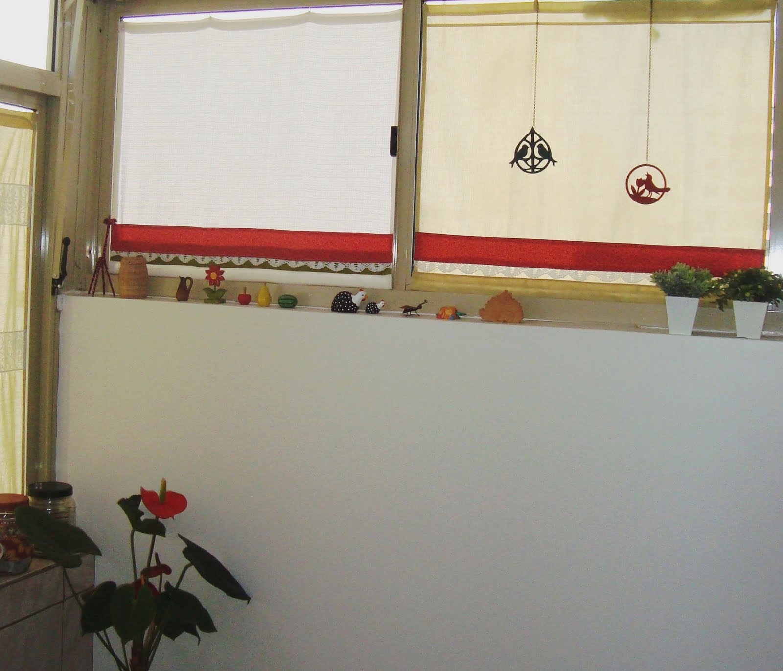 Ela faz par com a que mostrei anteriormente e, portanto, segue a mesma ideia da barra e da renda, também reaproveitada. E, claro, como tem uma bancadinha, um monte de coisinhas, trazidas de viagens ou que ganhei de presente, acharam um novo lugar!
