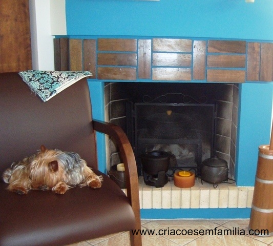 Eu os usei para fazer um detalhe na parede da lareira, que também ganhou nova cor!