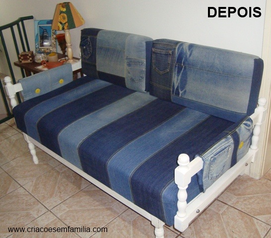 Amei o sofá jeans…idéia bárbara, aliás, como todas as tuas idéias! Artista de luxo! O bolso porta trecos também sensacional!