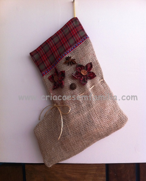 Minha mãe fez e nos presenteou com esta bota de juta.