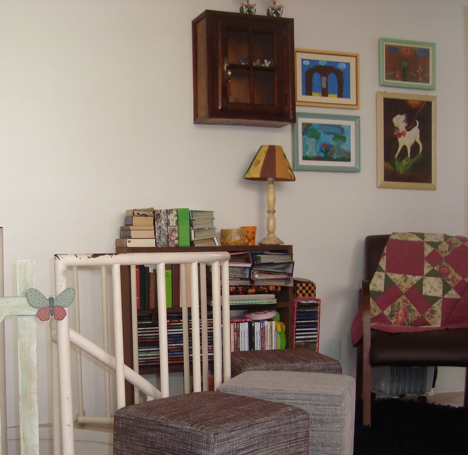 E, na imagem, dá pra ver bem uma urgência de pintura: a da estrutura de metal da escada caracol… já tenho a tinta (verde colonial), mas a escada vai ter que esperar na fila… (pra quem tá chegando, faz pouco que nos mudamos pra cá, e tem muito que fazer…!)